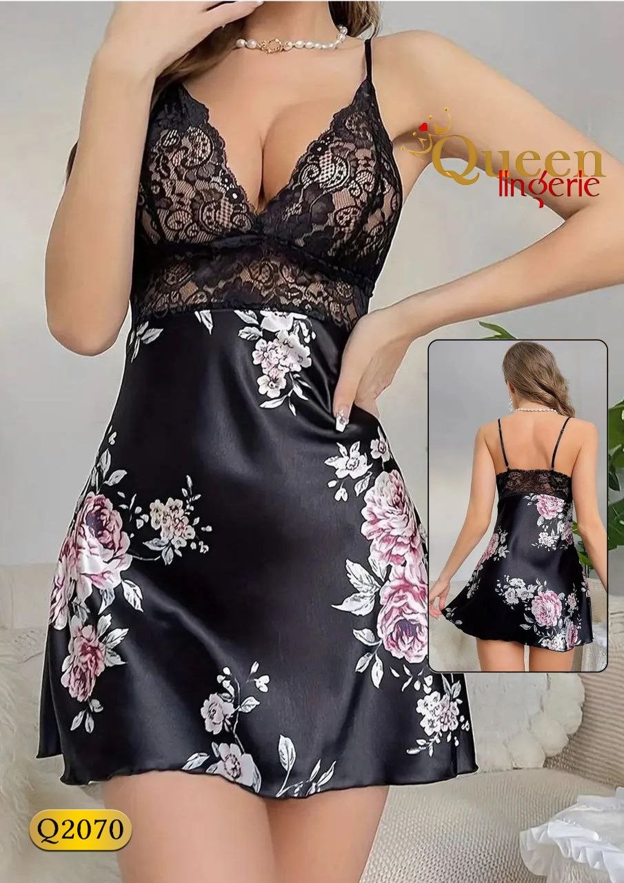 این لباس خواب فانتزی جذاب از جنس ساتن و گیپور کشی با کد 2070 مناسب فری سایز از ۳۸ تا ۴۴ میباشد. برای دیدن عکس تنخور اینجا کلیک کنید