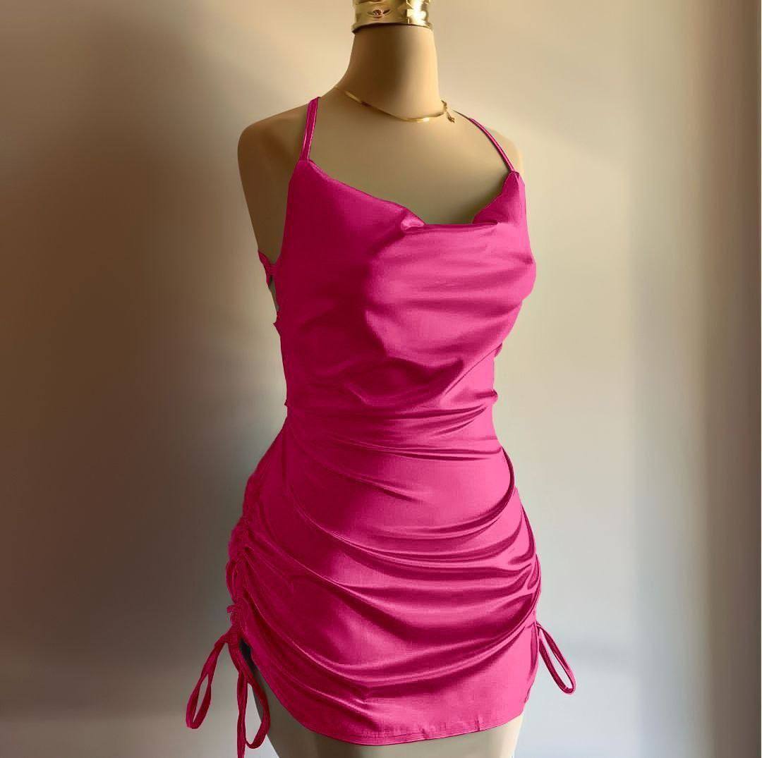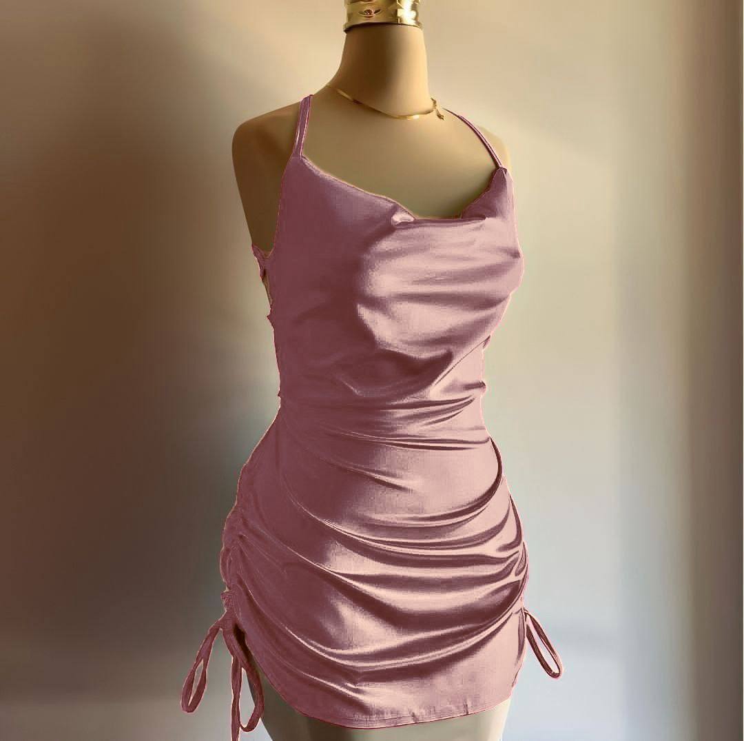 تونیک زنانه فانتزی بغل گتر قابل تنظیم و پشت بندی جنس ساتن LX کره ای قد 80cm کد M036