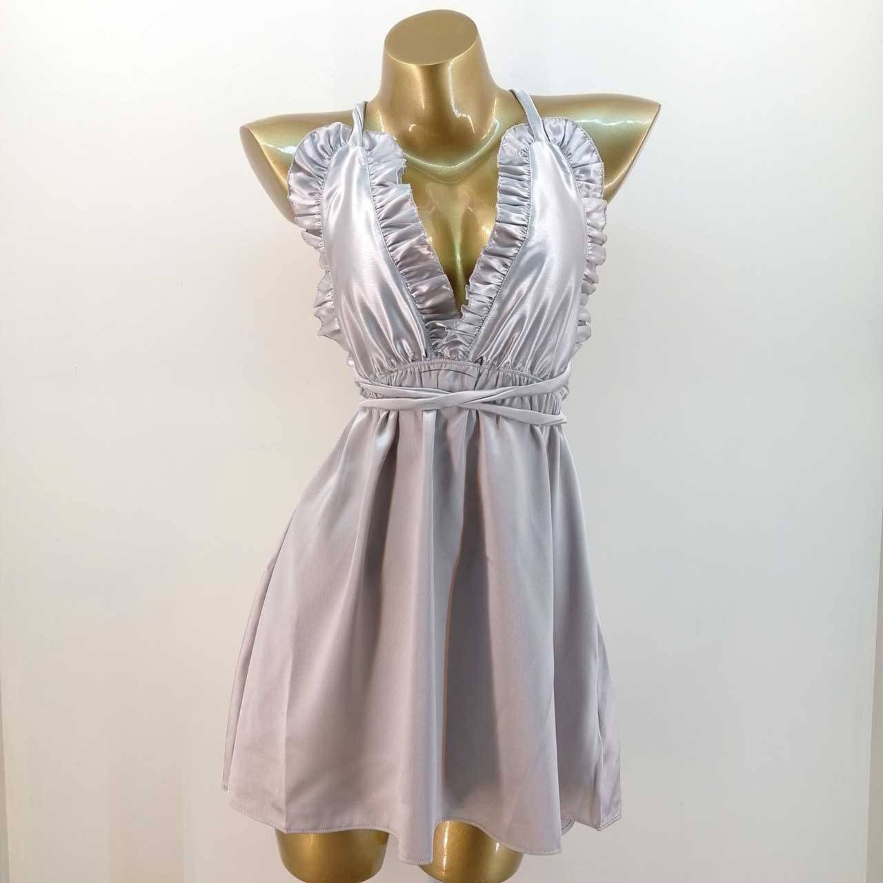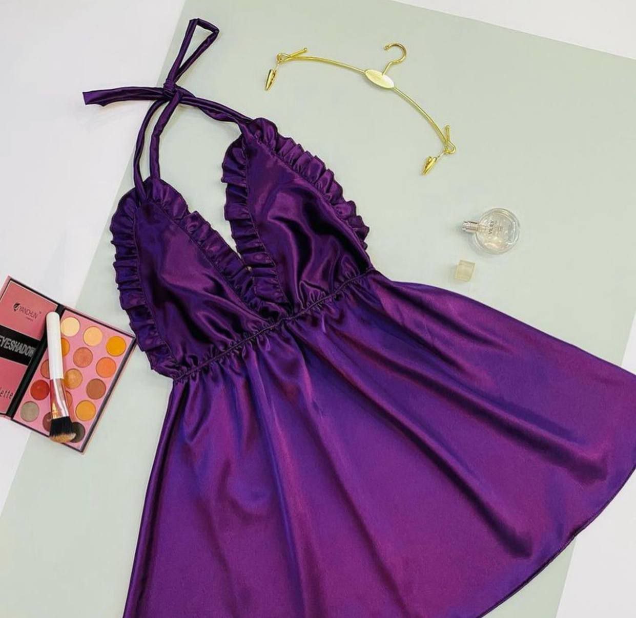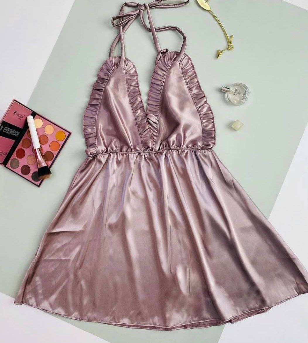 لباس خواب زنانه فانتزی ساتن بند گره ای بلند کد 4039