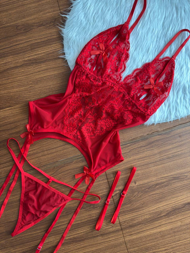 بند سرشانه رگلاژدار، کاپ سینه شیاردار، با بند جوراب متصل